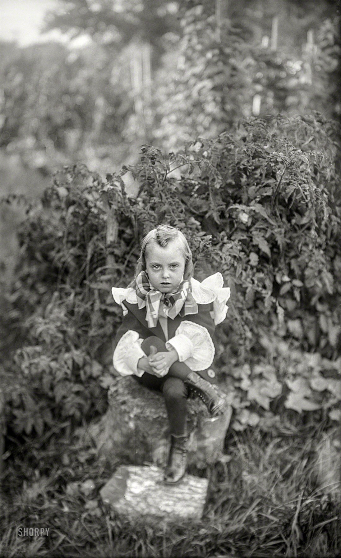 A New England garden circa 1900 and yet another outlandishly attired tyke, a century or so early for the ‘Harry Potter’ casting call. / source and caption: