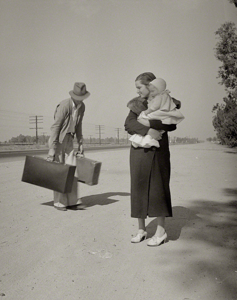 Dorothea Lange :: Young family hitchhiking on Highway 99 in California, 1936 / src: L.of Congress