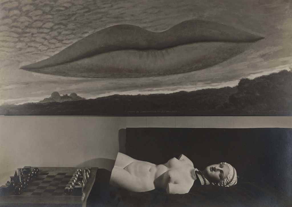 Man Ray :: Nature morte avec un jeu d’échecs, moulage en plâtre et A l’Heure de l’Observatoire – Les Amoureux, vers 1935-1936 / src: Christie’s