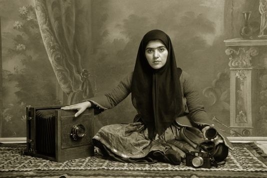 Shadi Ghadirian :: Qajar # 19, 1998. Gelatin silver print. From Middle East Revealed: A Female Perspective. / src: howard-greenberg