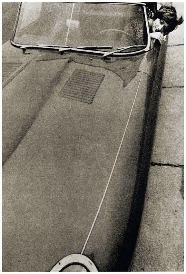 Helmut Newton :: Francoise Sagan in Jaguar E-type, Paris, 1963 / src: