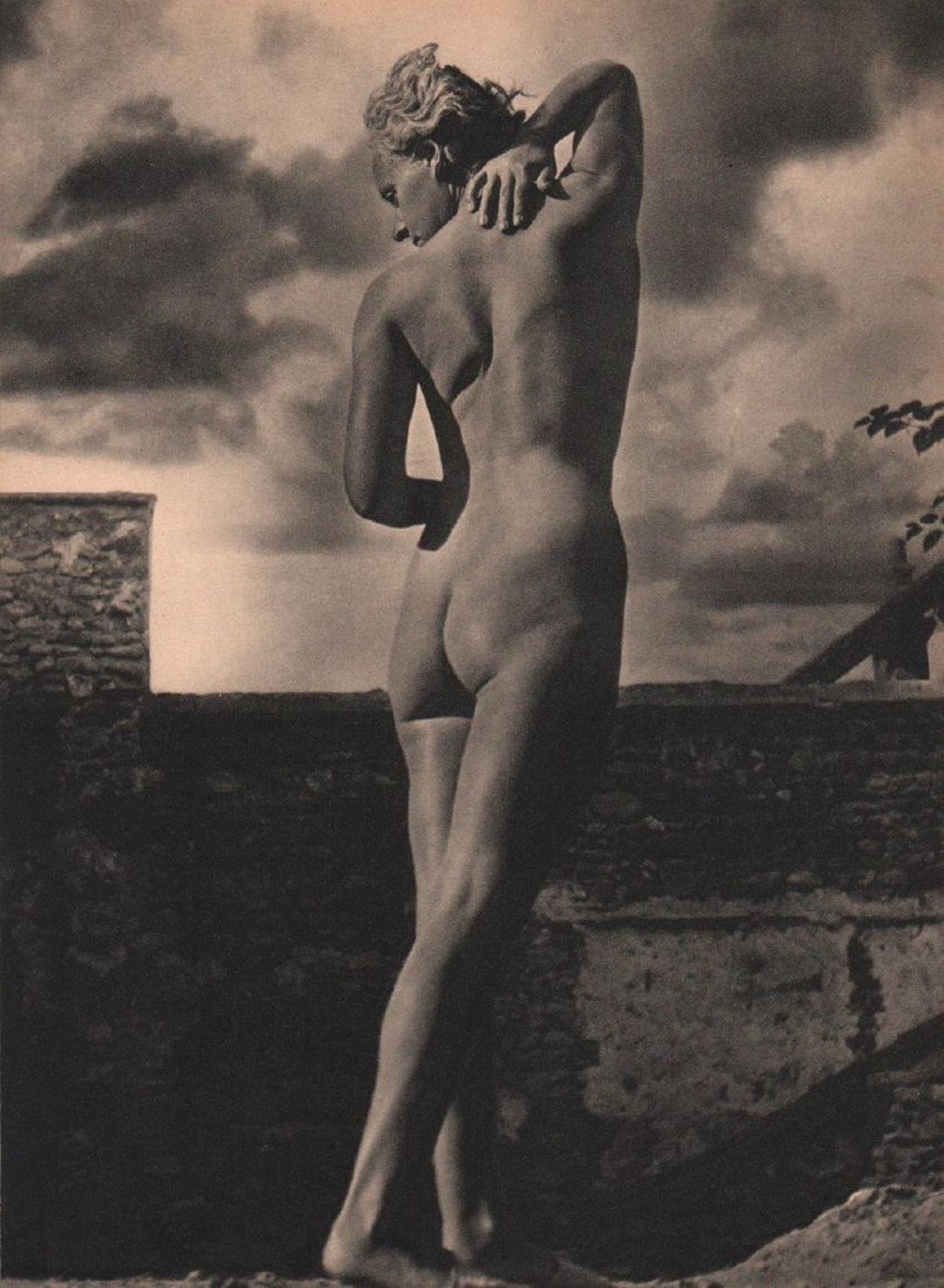 Nora Dumas born Kelenföldi Telkes Nóra · Étude du nu |Nude Study, early 1930s. In ‘28 Etudes de Nus’, Paris, Arts et Métiers Graphiques, 1936. | image source LiveAuctioneers. This photograph is credited in other sources as Ergy Landau’s and titled a nude study of Nora Dumas as here or simply credited as Ergy Landau’s as here. | image src LiveAuctioneers.
