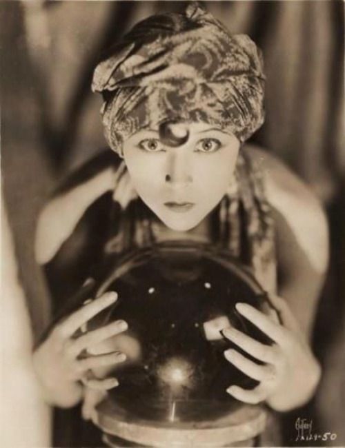 fortune teller dressed as a Gypsy with a crystal ball, 1920′s / source