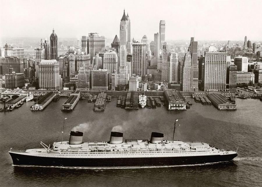 The Normandie in New York, 1935-39. (Collection French Lines) via V&A Museum