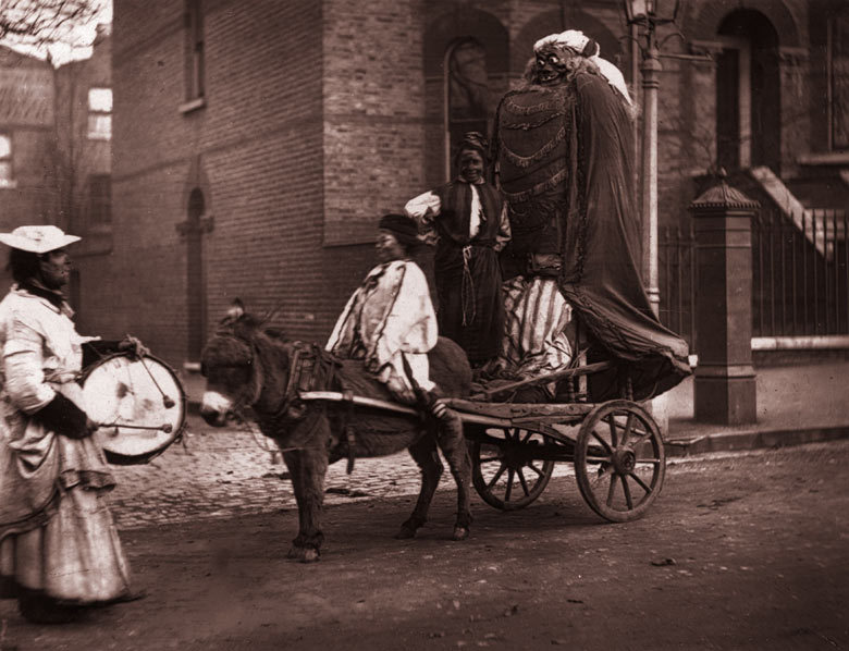 John Thomson :: A costermonger’s giant guy being paraded through the streets of south-east London, Bonfire night, 1876