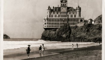 Detail from a postcard featuring a girl at the beach with the Victorian Cliff House (San Francisco) between 1896-1907Postcard featuring a girl at the beach with the Victorian Cliff House (San Francisco) before the fire of 1907 | src cliff-house-projectVictorian Cliff House, San Francisco, vintage postcard. Between 1896- Sept. 1907 | src cliff-house-project