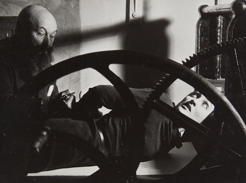 Man Ray :: Surrealist artist Meret Oppenheim and printer Louis Marcoussis at his studio,