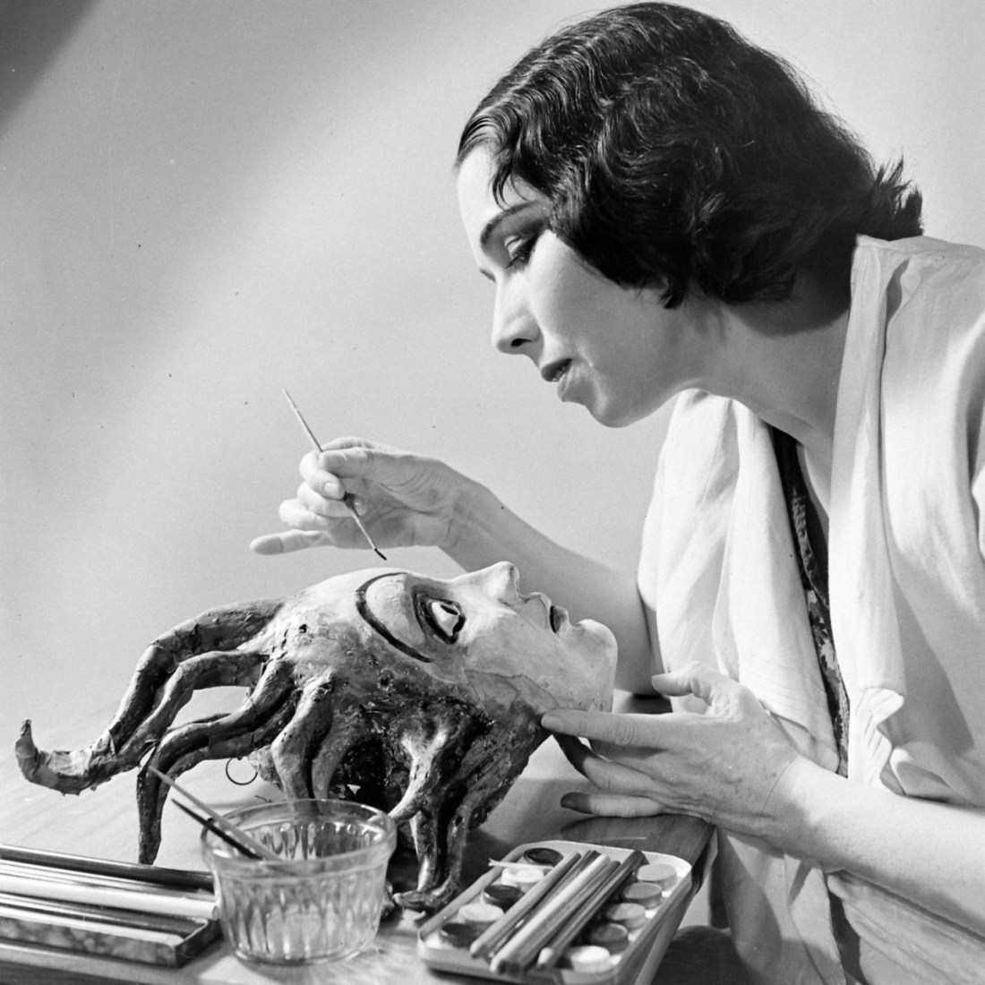 Nina Leen :: Mask Dances (Margaret Severn painting a mask), 1940′s / src Life magazine. Dancer Margeret Severn was most famous for using more than a dozen different Benda masks in The Greenwich Village Follies of 1921.