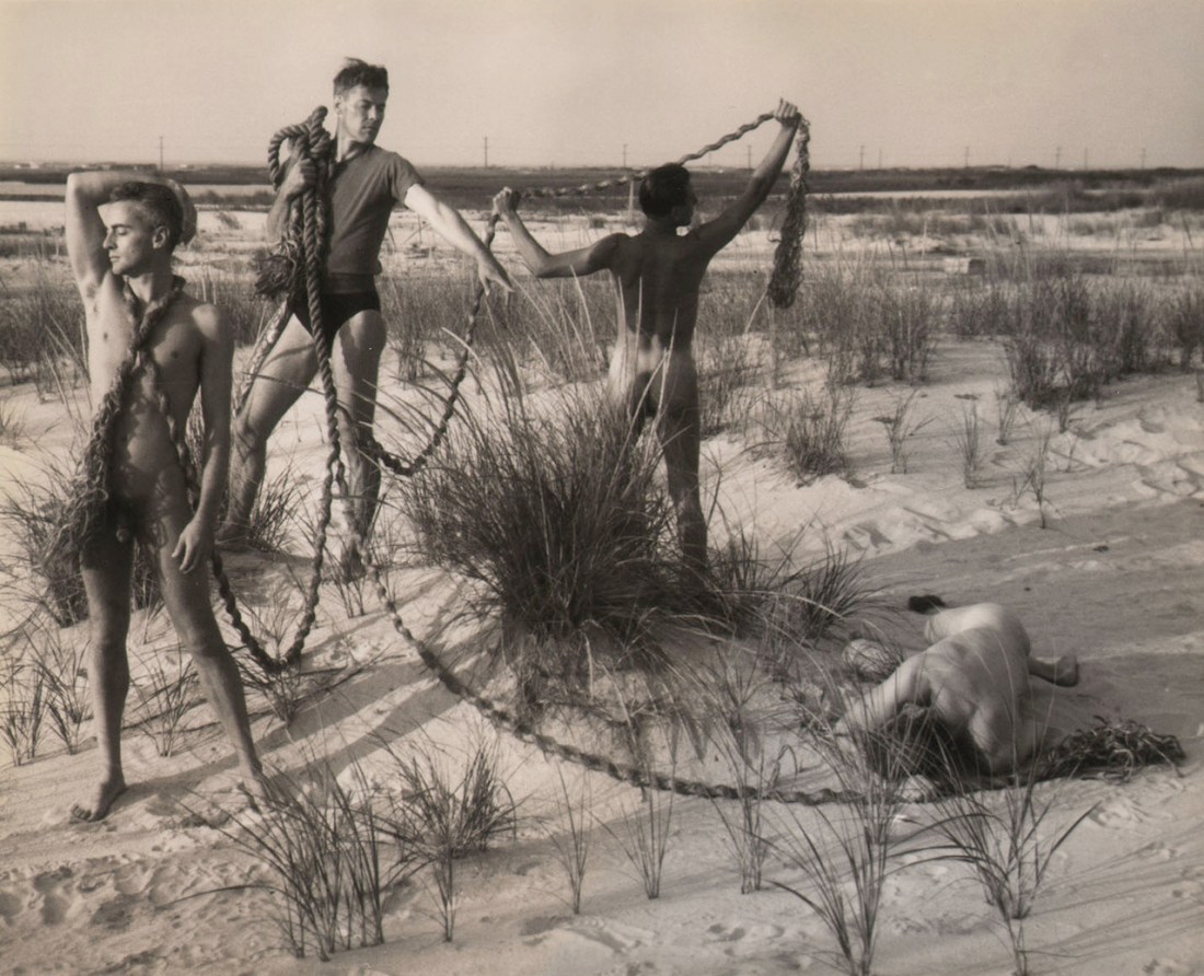 Glenway Wescott, George Platt Lynes, Paul Cadmus, [Unidentified], ca. 1941 | src Pa·Ja·Ma: Magic Realism. Paul Cadmus, Jared French, Margaret French.