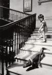 John Drysdale :: Descending a staircase in a house once lived in by Britain’s naval hero admiral Horatio Nelson | A pet crocodile is led on a tour of her home by a four old girl, Cricket St. Thomas, England, 1976