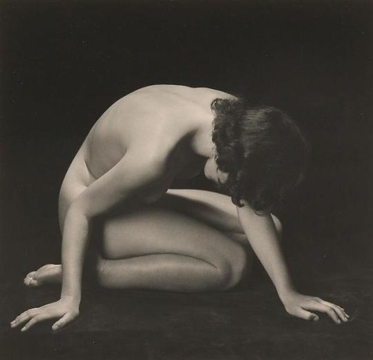 Rudof Koppitz :: Kneeling Nude (Anna Koppitz), ca. 1925, silver bromide vintage print.