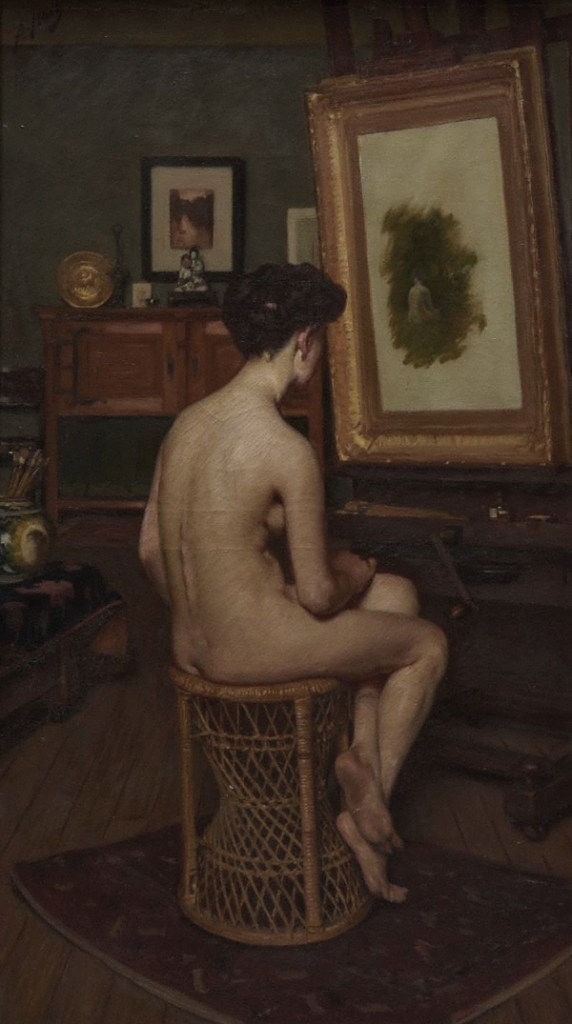Bernard Hall :: The model (nude). Oil on canvas. A similar painting is in the collection of the University of Melbourne, titled ‘Dining room interior’, and dated circa 1910-19.| src NSW Art Gallery