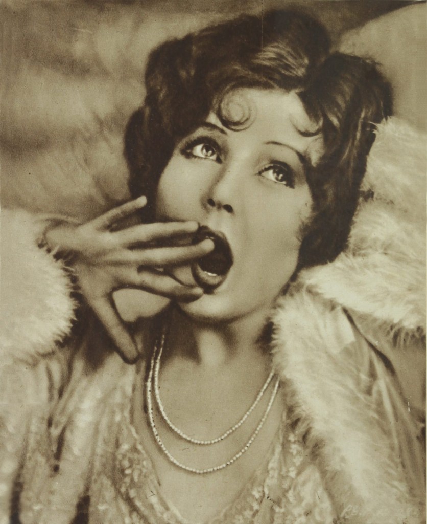 Gähnen mit und ohne Scharm. Nancy Carroll versucht es mit Grazie Yawning with and without charm. Nancy Carroll tries grace Die Bühne 1929, Heft 235, Seite 14. | src ÖNB