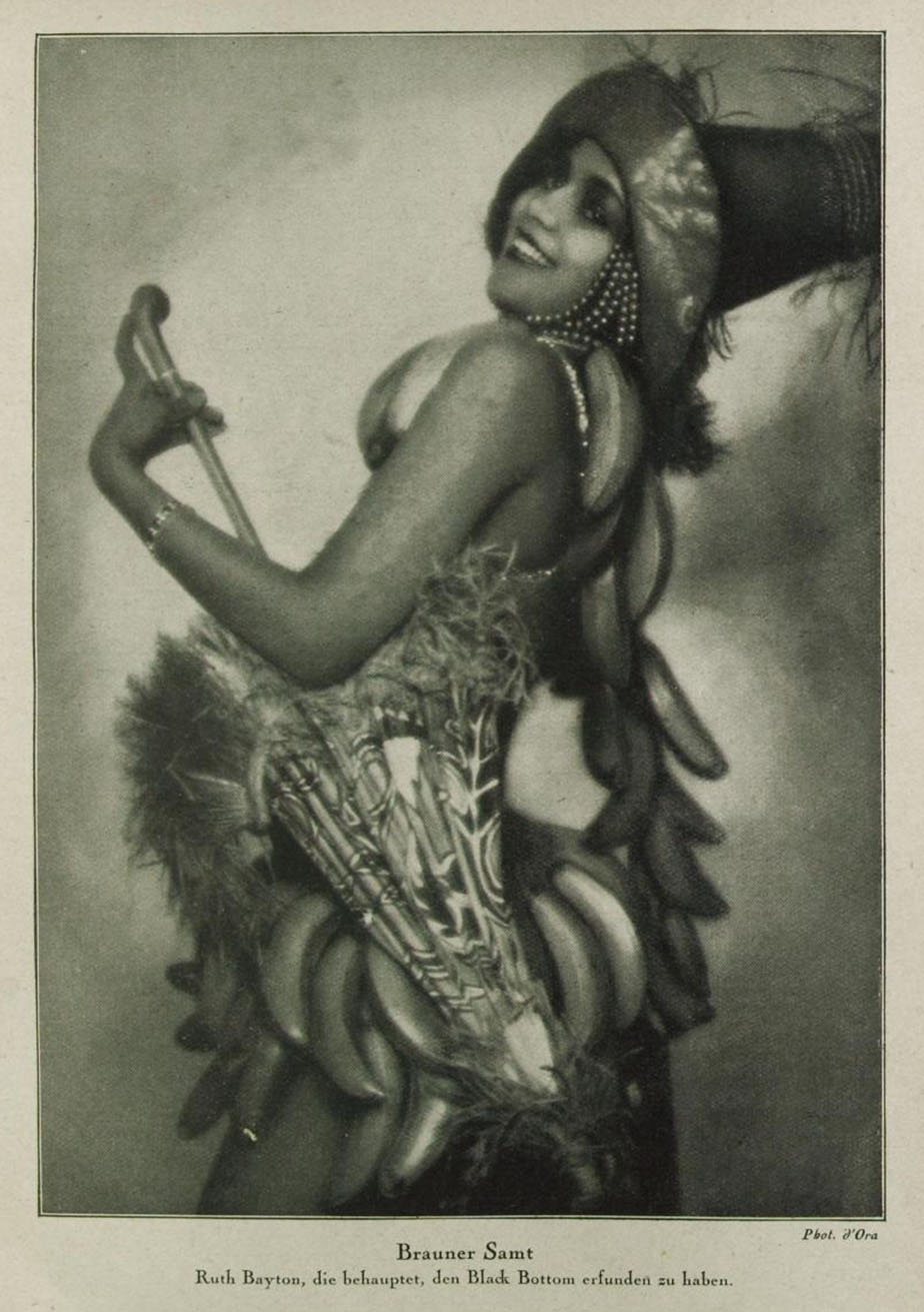 Atelier d’Ora – Benda ~ Ruth Bayton, Revuetänzerin von Folies Wagram im der Revue: ‘Der Zug nach dem Westen’ erschienen Uhu Magazin 10/1927. | Ruth Bayton, revue dancer from Follies Wagram in the revue: ‘The train to the west’ published in Uhu magazine 10/1927. | src Getty ImagesBrauner Samt. Ruth Bayton, die behauptet, den Black Bottom erfunden zu haben. UHU Magazin B.3 H.10, Juli 1927