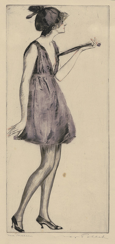 Max Pollak :: Actress and dancer Isa Marsen (Blau), ca. 1921. Drypoint with color aquatint. | src Annex Gallery