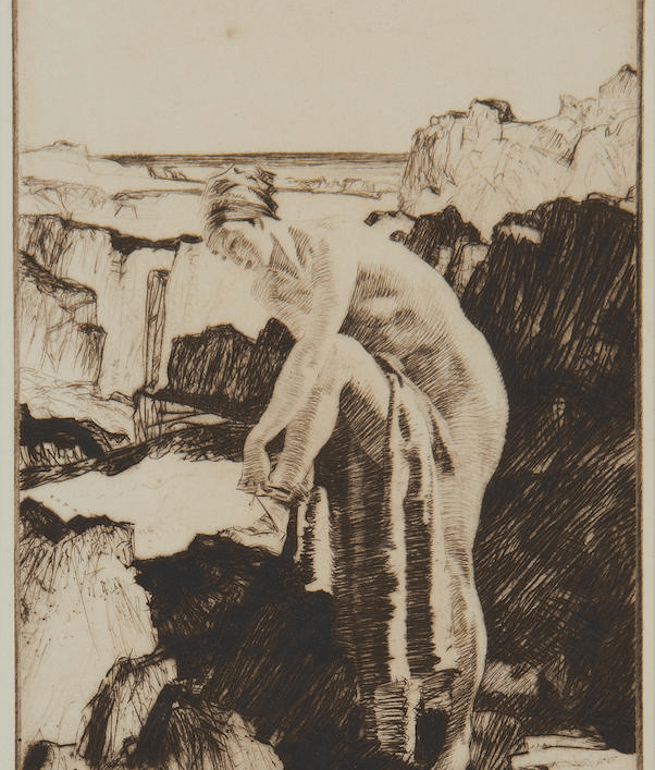 William Russell Flint :: Celinda’s Precaution (Wright 52). Drypoint on wove, signed in pen, 1931. | src Bonhams