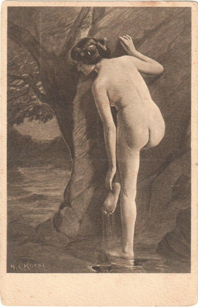 H.C. Kosel :: Bathing nude woman from behind. Vintage postcard nº 504 or 501 on verso. | src eBay