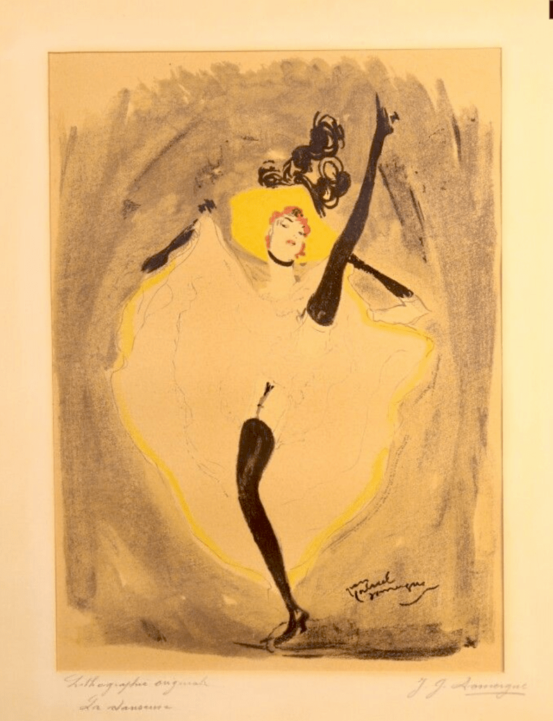 Jean Gabriel Domergue (1889-1962) :: “La danseuse de French Cancan”, lithographie signée dans la planche. | src Drouot