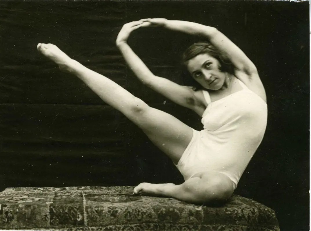 Madzsar Lili tornamutatvány közben, az 1920-as évek elején. Magántulajdon. Digitális példánya az MTA BTK Művészettörténeti Intézetben | Lili Madzsar, daughter of Alice Madzsar, during a gymnastic exercise on the podium in the early 1920s. Private collection. Digital copy at the Institute of Art History of the Hungarian Academy of Sciences. | src papageno.hu