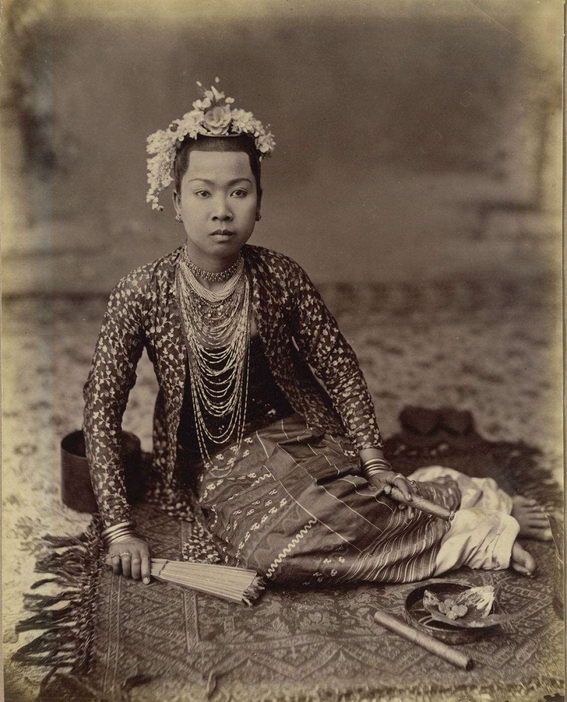 Philip Adolphe Klier :: Donna birmana con ventaglio e sigaro, Burma, ca. 1880. Albumen print. | src Collezione Molinario
