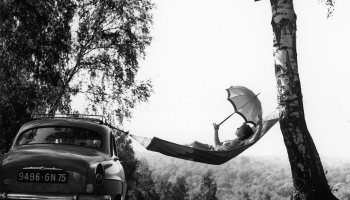 Manuela von Meinhardis (Romy Schneider) enjoys the peace and quietness while fishing with her classmate Johanna (Paulette Dubost). A rare fun away from the strict girls’ school. Scene from Mädchen in Uniform, directed by Geza von Radvanyi (Germany / France, 1958). Produced by: Central Cinema Company Film (CCC)