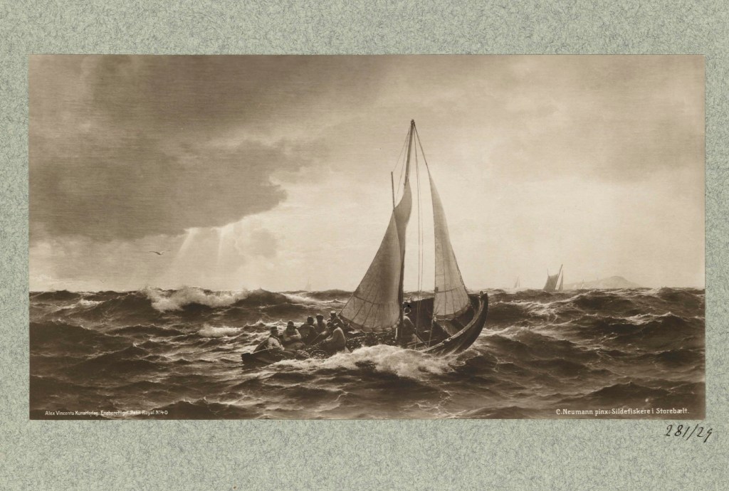 Carl Neumann (painter, 1833-1891) :: Sildefiskere i Storebælt | Herring fishermen in Storebaelt. Dokumentariske fotografier af dansk billedkunst. Stammer fra Kunsthistorisk Billedarkiv. | src Det Kgl. Bibliotek