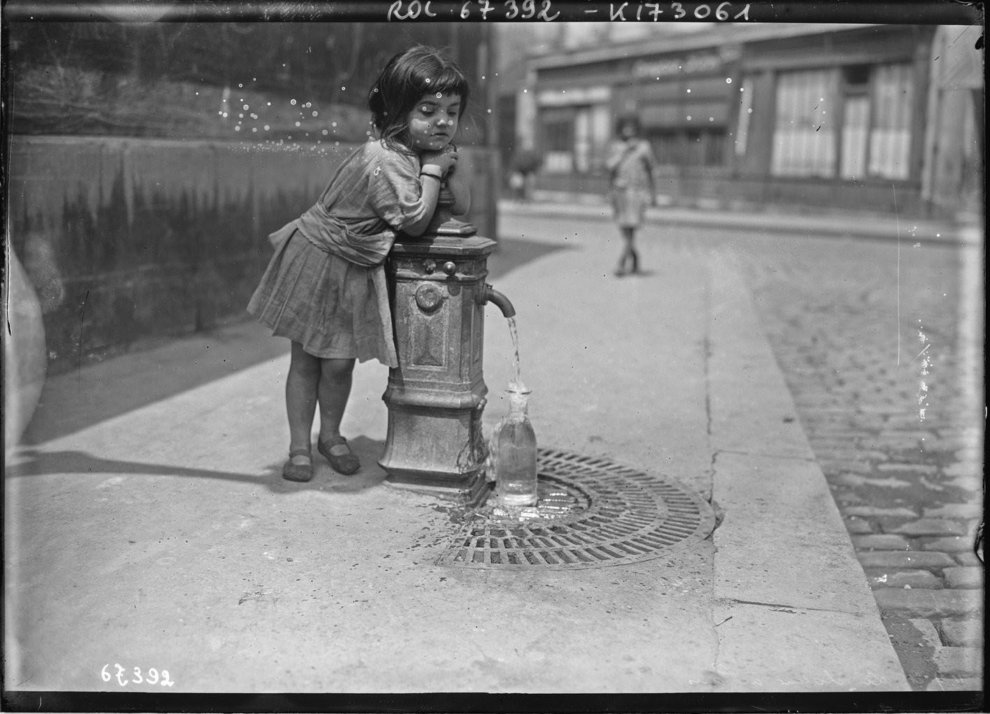 Agence Rol ~ La chaleur à Paris [fillette prenant de l’eau à une borne-fontaine], 1921 [detail]