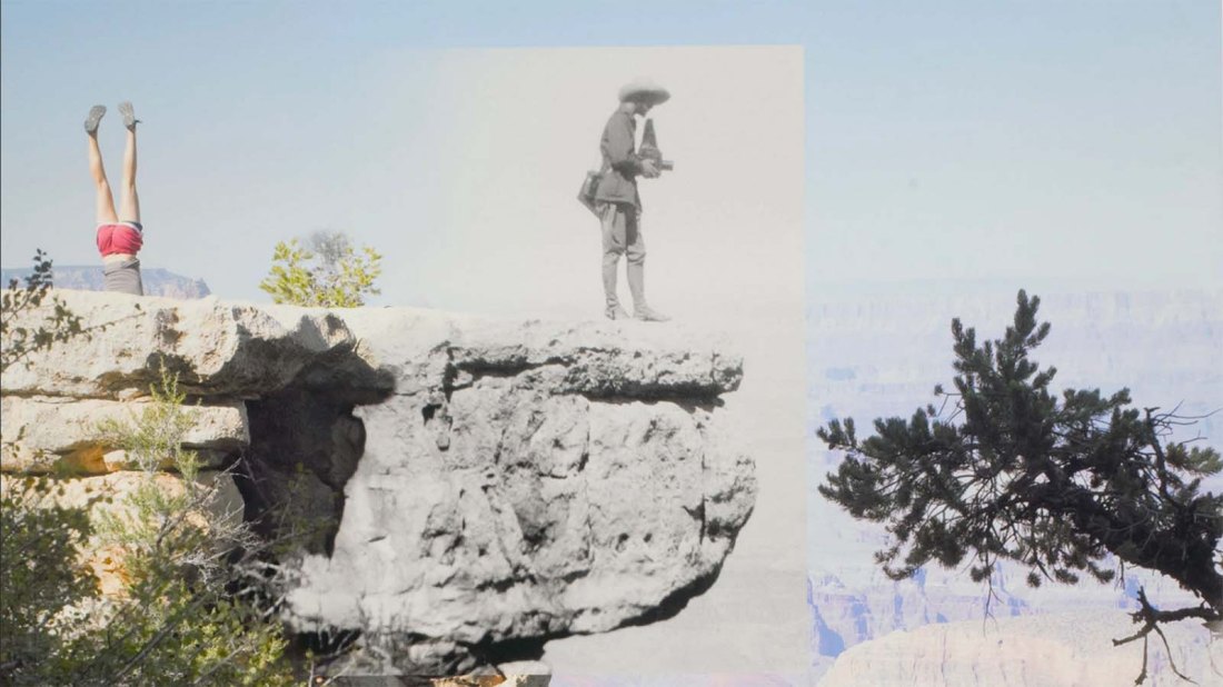 Fannie E. Coburn (1848–1928) :: Alvin Langdon Coburn at the Grand Canyon, 1911. Platinum print, printed by Alvin Langdon Coburn. | src George Eastman MuseumMark C. Klett and Byron Wolfe :: Woman on head and photographer with camera; unknown dancer and Alvin Langdon Coburn at Grand View Point, 2009. Inkjet print, printed 2011. From the series Reconstructing the View Grand Canyon Photographs. | src George Eastman Museum