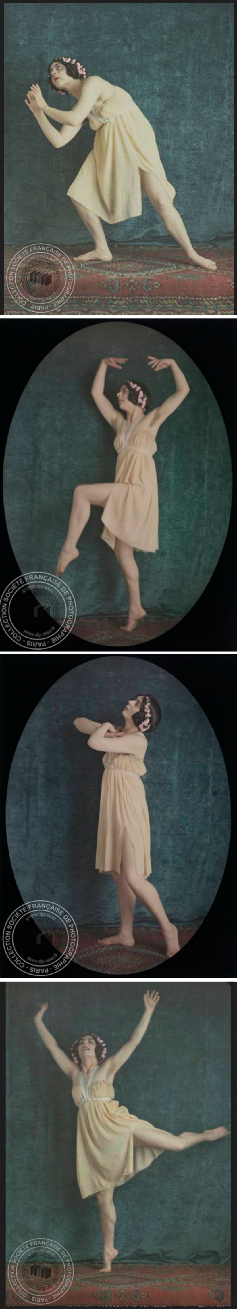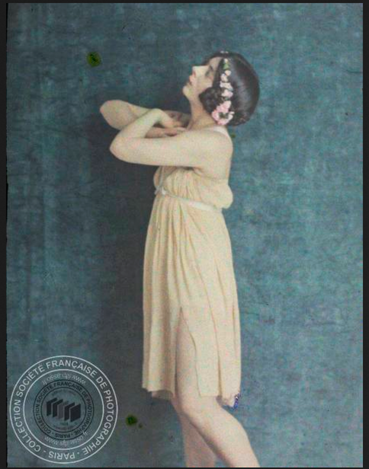 André Hachette :: [Danseuse avec tunique grecque], entre 1907 et 1945. Plaque de verre Autochrome. | src Société française de photographie