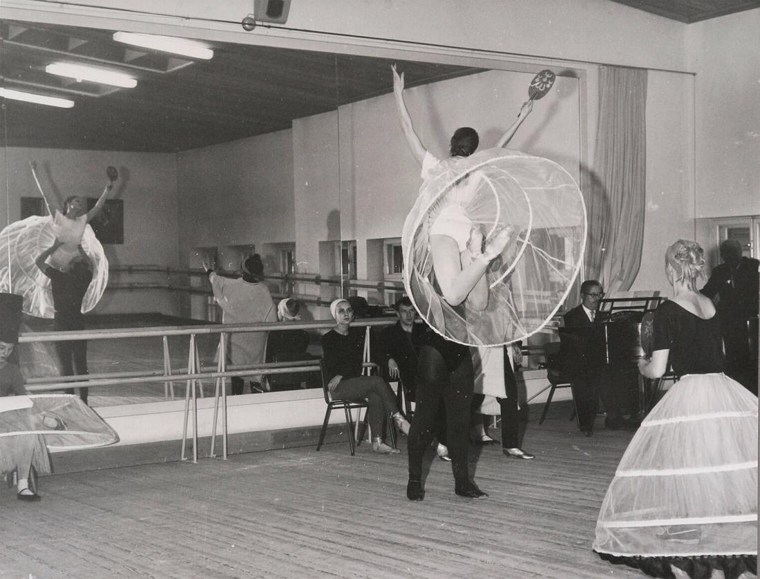 Enar Merkel Rydberg :: Carina Ari som koreograf instruerar dansarna under arbetet med “De fåvitska jungfrurna” på Operan 1962. | Carina Ari as choreographer instructs the dancers during the rehearsal of Les Vierges Folles in 1962. | src Dansmuseet
