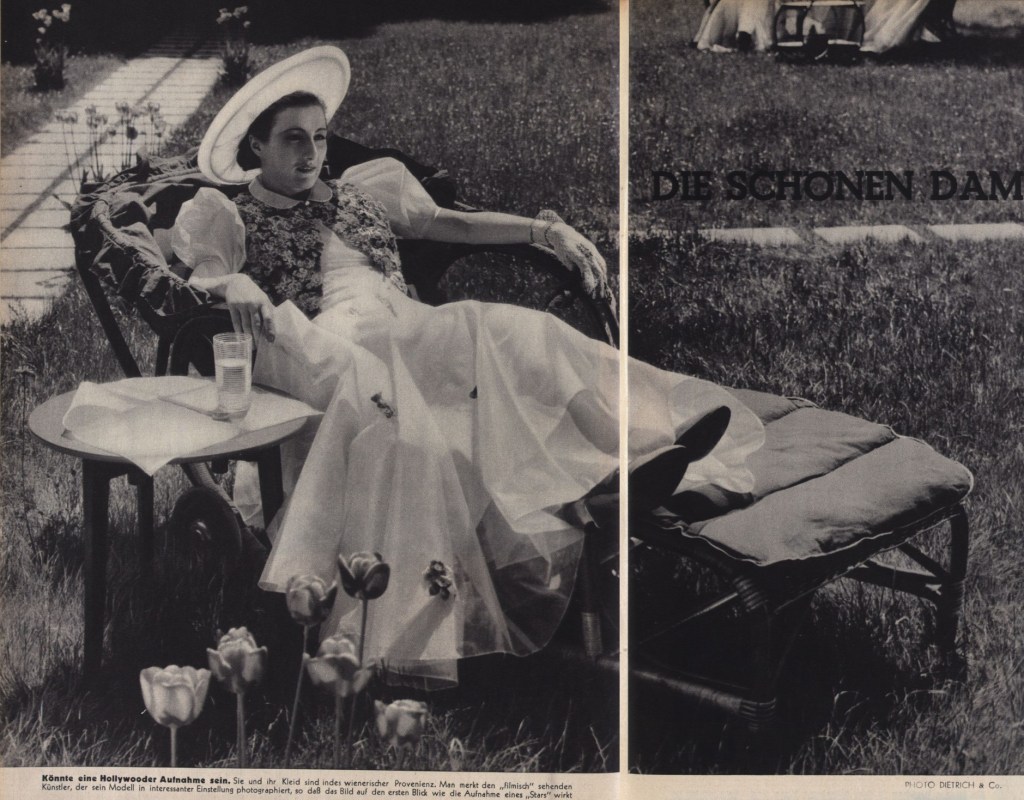 Man Merkt den “filmisch” sehenden Künstler, der sein Modell in interessanter Einstellung photographiert, so dass das Bild auf den ersten Blick wie die Aufnahme eines “Stars” wirkt. Photo Dietrich & Co., Die Bühne, Heft 451, S. 30-31, 1937. | src ÖNB