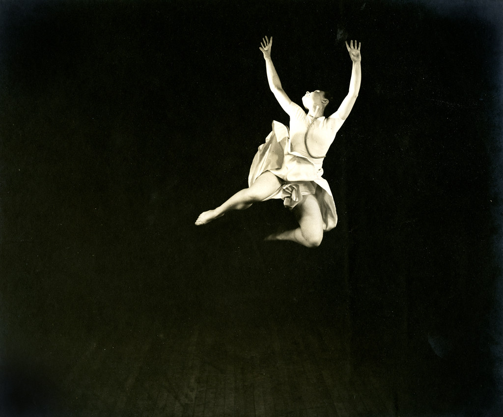 Barbara Morgan :: Valerie Bettis, “Leap” [A woman leaping and twisting in the air, her feet and skirt visible], 1935-1945. src The J. Paul Getty Museum