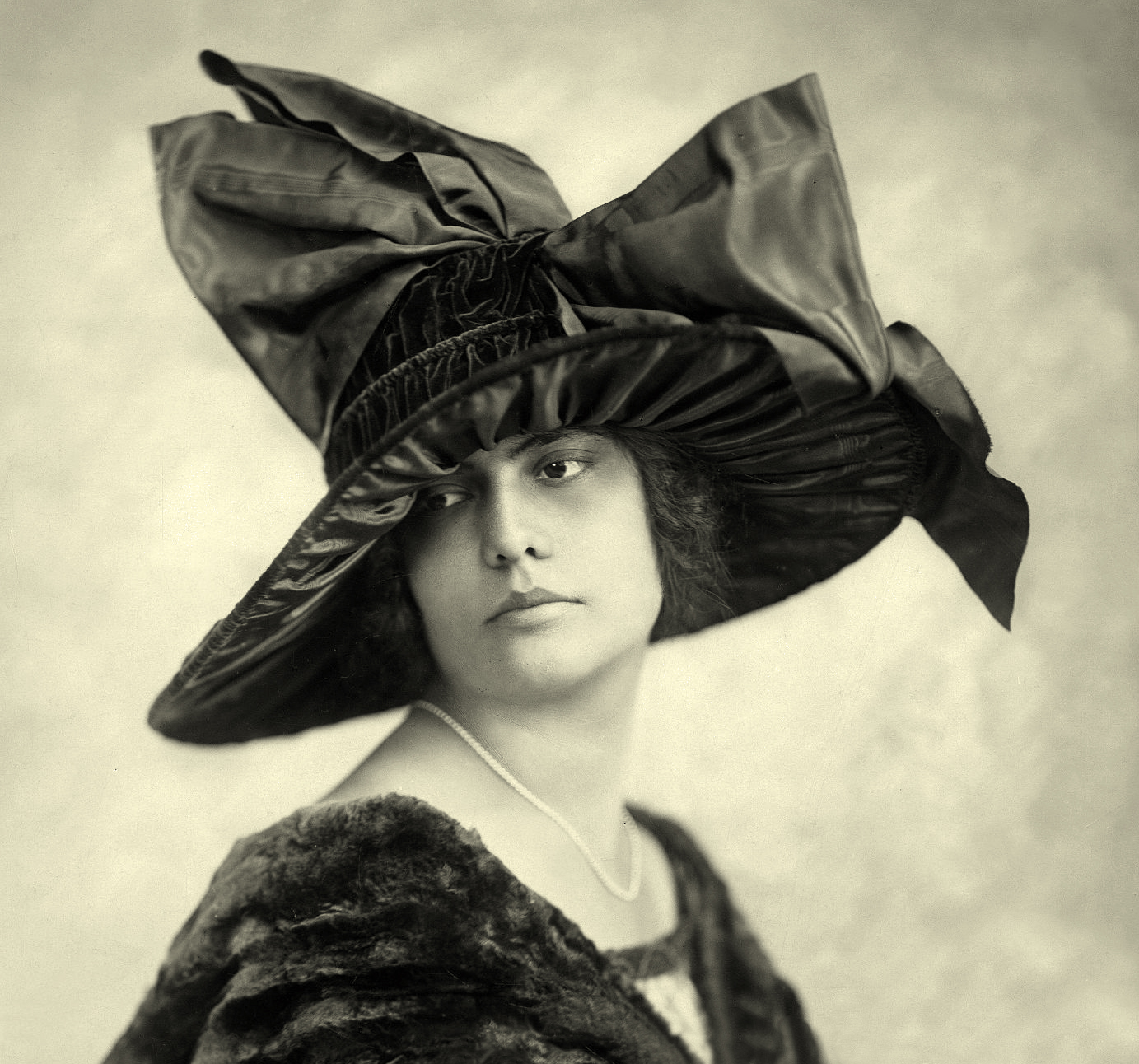 Becker und Maß :: Schauspielerin Cara Guyl mit einer Pelzstola und einemgrossen Hut von Klugeerschienen. | Actress Cara Guyl with a fur stole and a large hat by Klugeerschienen. Published in Die Dame 21/1922. (close up)| src and hi-res Getty Images