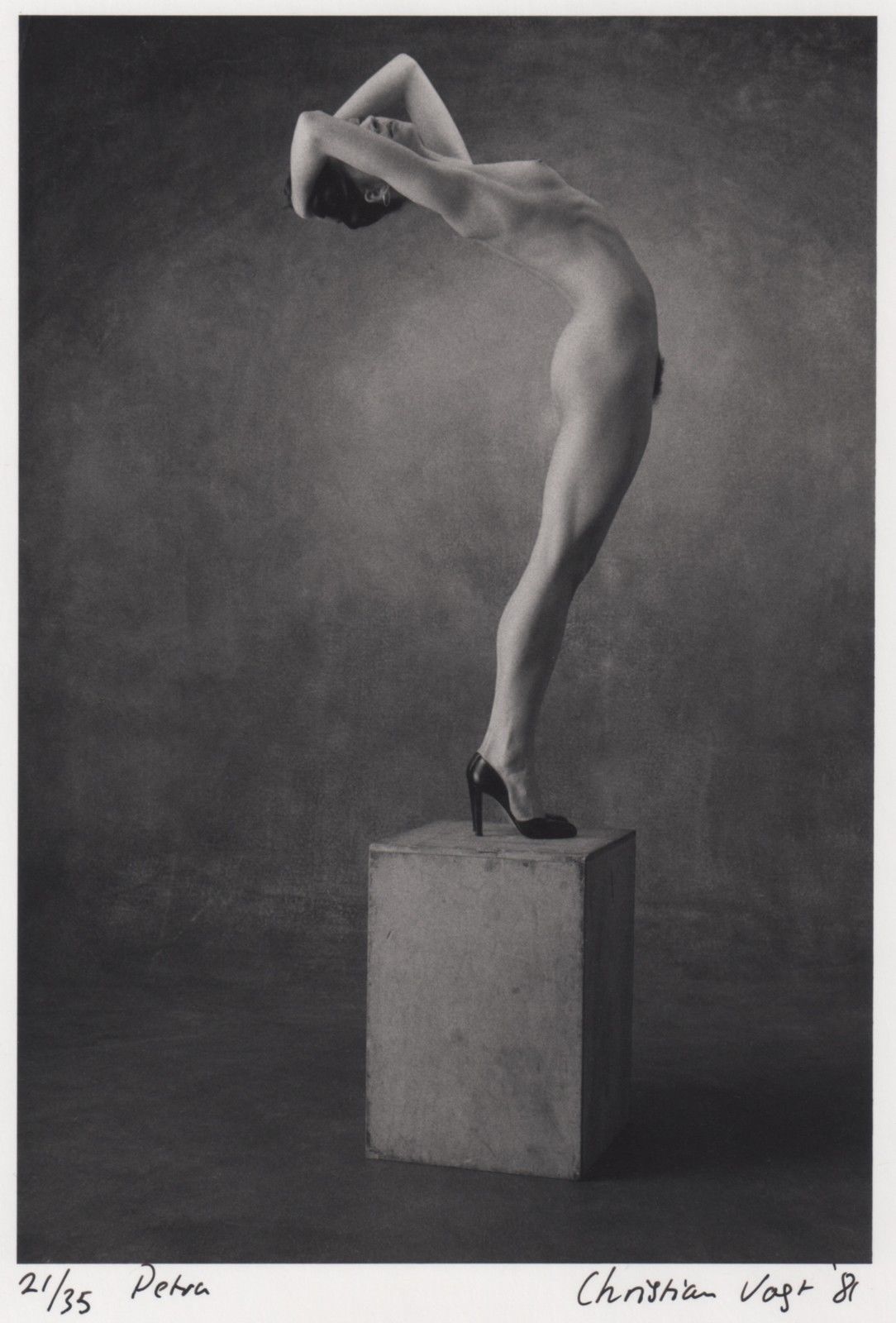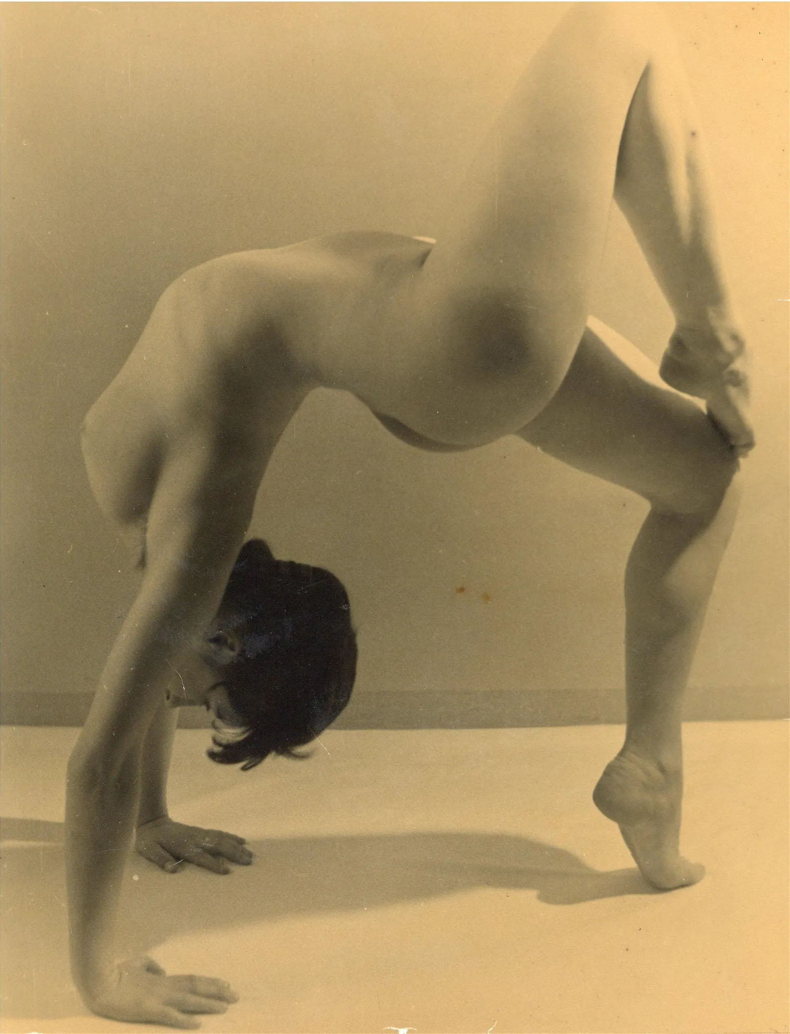 Josef Vetrovsky (1897-1944) ~ Nude gymnast [Bridge on demi-point], ca. 1925-1930. The words ‘Pohyb’ (movement) and ‘Volankova’ (model) written on verso. Vintage toned gelatin silver print | src liveauctioneers