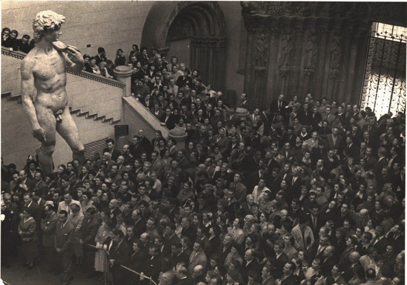 “The writers Boris Pasternak and Korney Chukovsky attend the First Inaugural Soviet Writer’s Congress. Established two years prior, the Writer’s Union abolished all independent literary organizations in the USSR. It also granted the two writers neighboring homes in the town of Peredelniko where Pasternak wrote Doctor Zhivago.” quoted from source