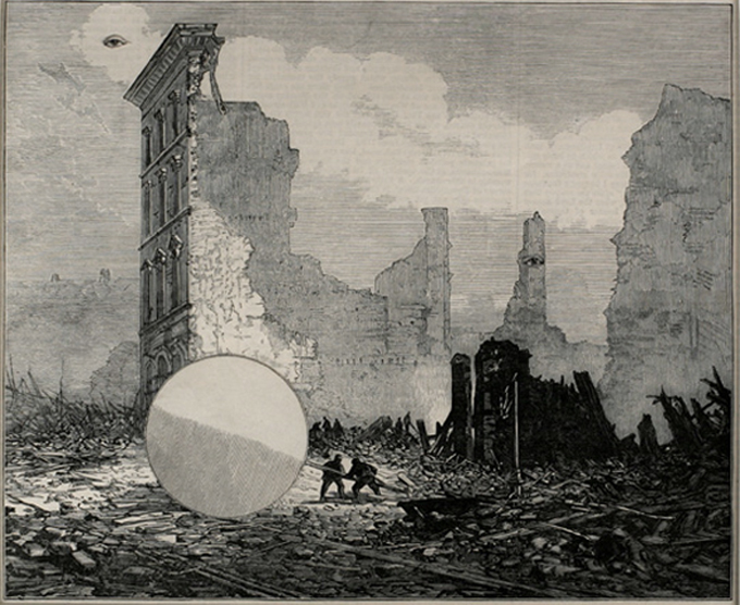 Saving the Big Lollipop, 1981 Bruce Conner :: Saving the Big Lollipop, November 4, 1981. Collage. | src Ubu Gallery ~ Metamorphosis Victorianus: Modern Collage, Victorian Engravings & Nostalgia exhibition