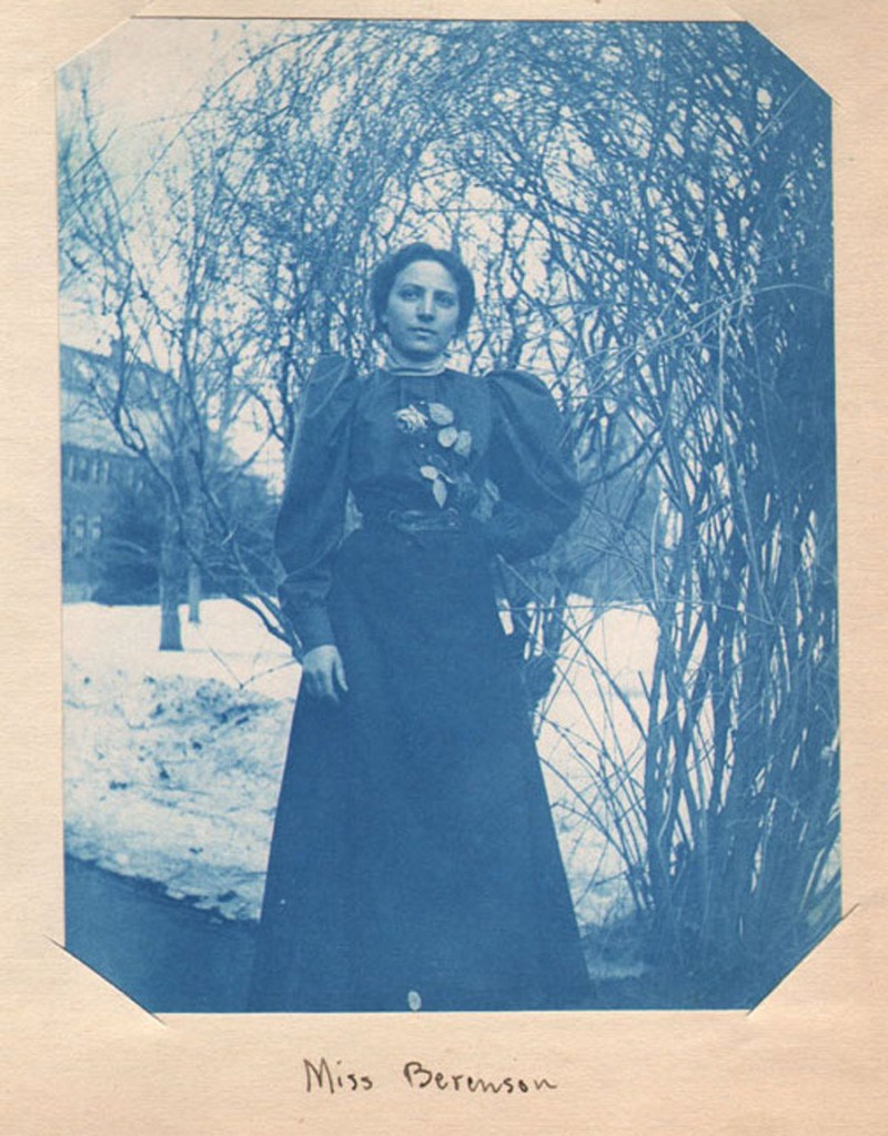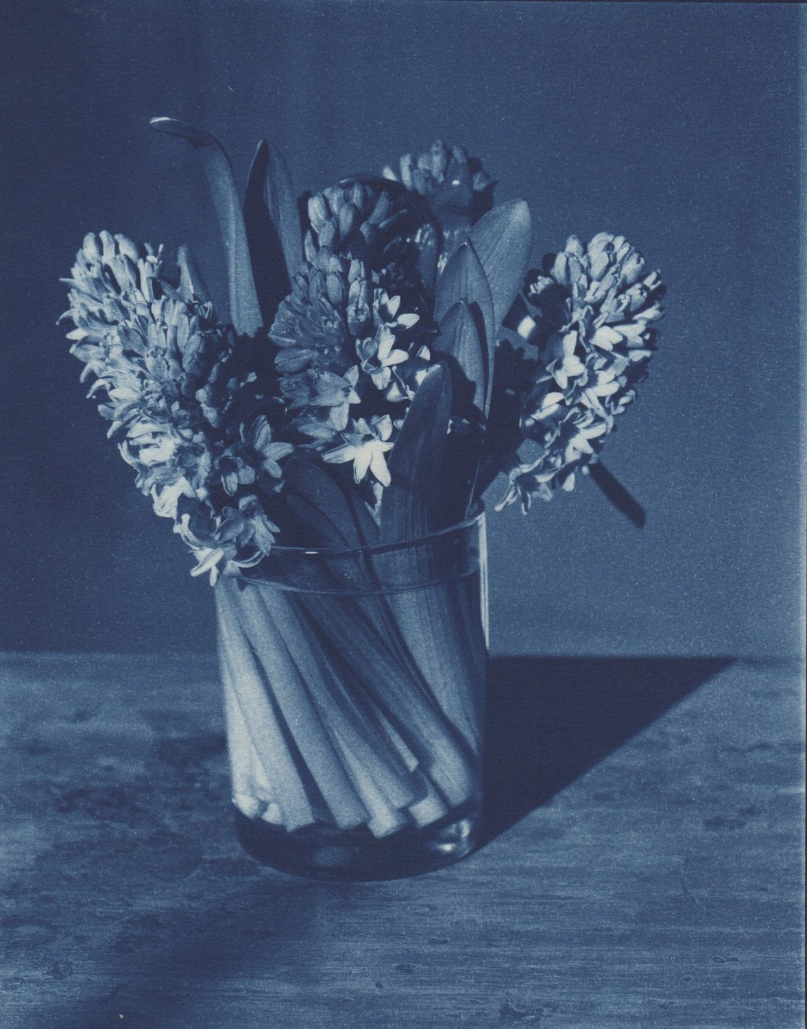 Sir John Herschel invented the cyanotype process in 1842. The process was briefly used in the 1840s to make camera-less prints, or photograms, most notably for scientific purposes. The process experienced a resurgence in the late nineteenth and early twentieth centuries corresponding with the introduction of roll film. Both the cyanotype and roll film appealed to a new class of amateur photographers. The images shown here were made around 1910 with a roll film camera that shoots a 2 1/4 x 2 3/4 image. Cyanotype paper was commercially available and did not require any processing chemicals, only a thorough wash in water after exposure. | src Graphic Atlas