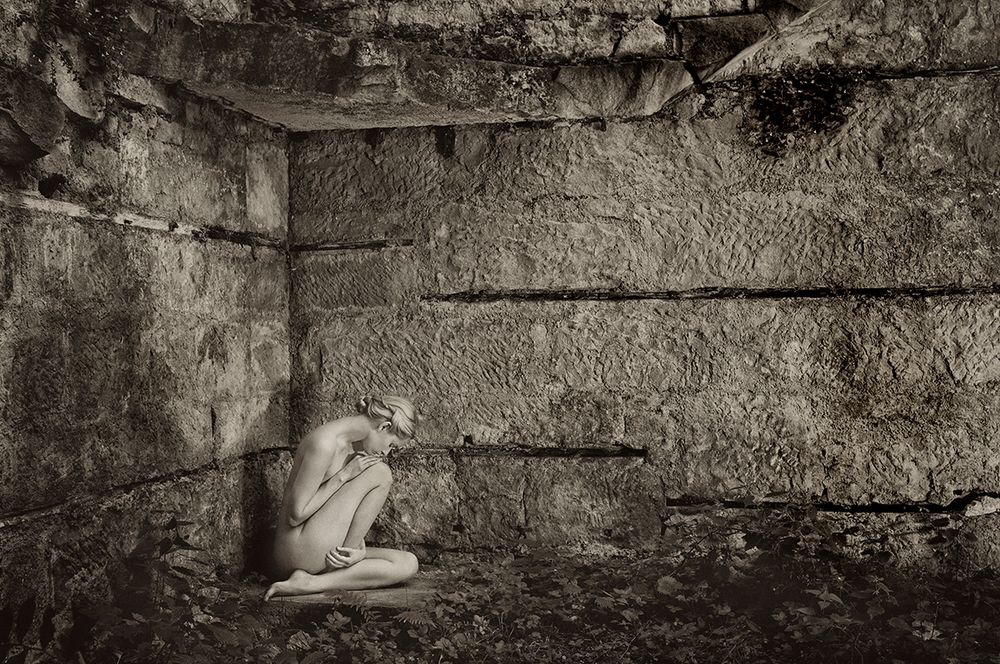 Contemplation by Faye Yerbury Faye Yerbury :: Contemplation. A nude girl in a burnt out castle basement. | src LensCulture