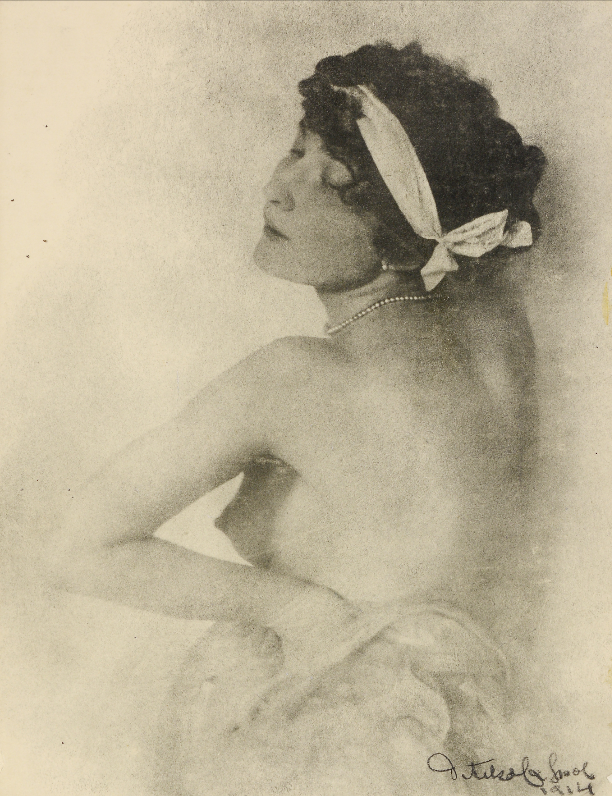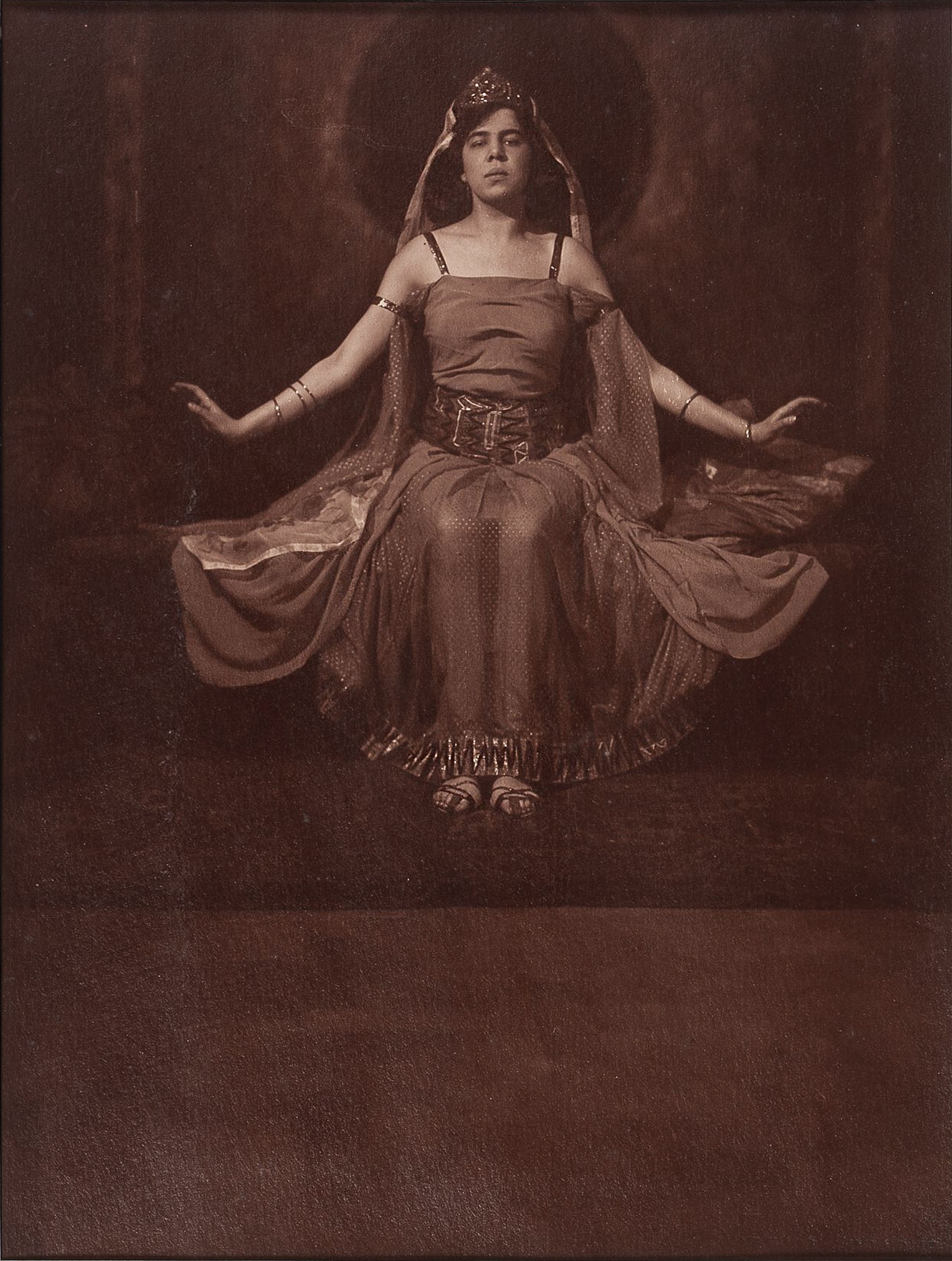 Tirage argentique en brun contrecollé sur carton représentant Ervina Kupferova en Cléopâtre. Ervína Kupferová, danseuse célèbre fut la femme de Frantisek Drtikol. (src: Drouot)