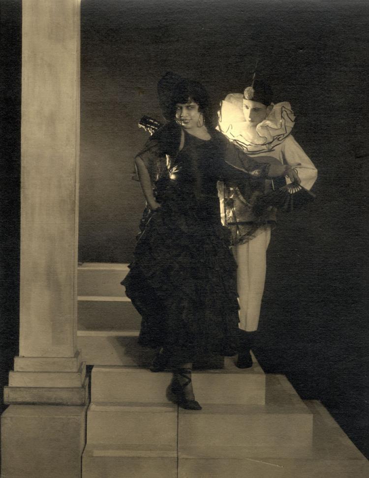 While the identity of the male Pierrot figure remains a mystery, the woman pictured in the present work is likely dancer and actress Erwina Kupferova, the artist’s muse and first wife.