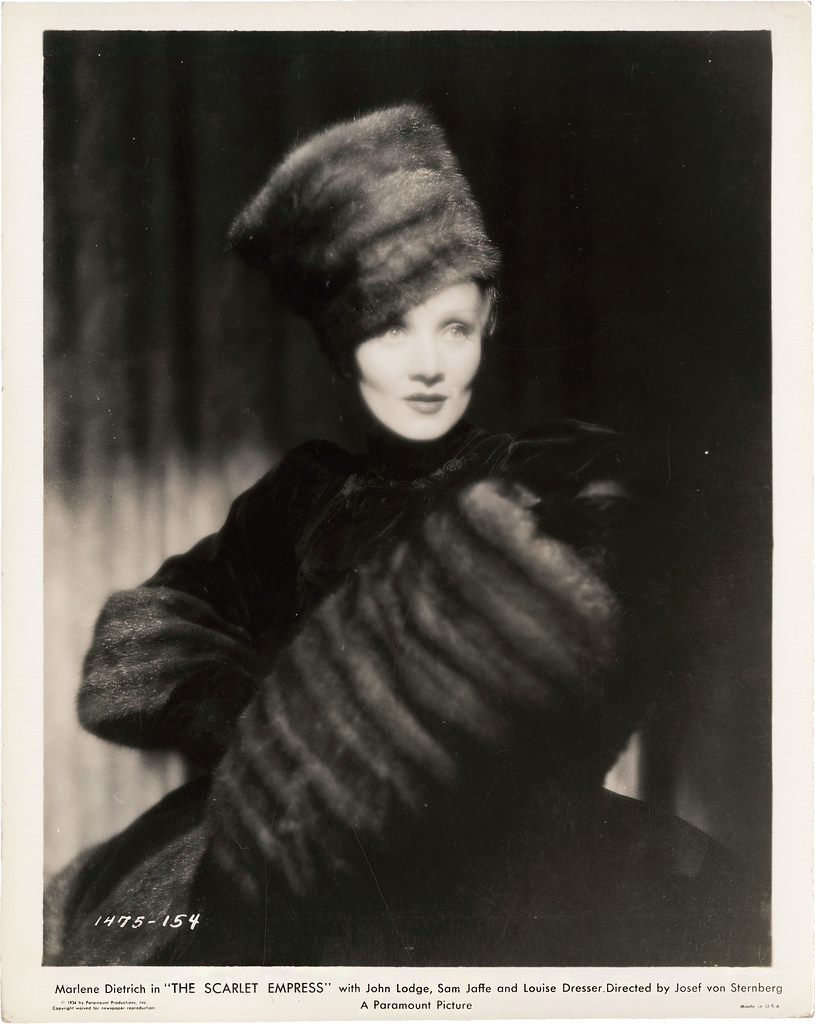 George Rinhart :: Actress Marlene Dietrich Wearing Fur in The Scarlet Empress. Original Caption: Marlene Dietrich as Catherine II of Russia in The Scarlet Empress, a film by Josef von Sternberg (1934). | src Alice Japan and Getty Images