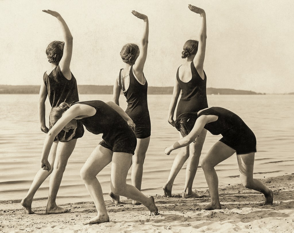 Gerhard Riebicke :: Sports, gymnastics: women at a gymnastic exercise on the beach, 1927. Published by ‘Das Blatt der Hausfrau’ 21/1927. | src Getty Images