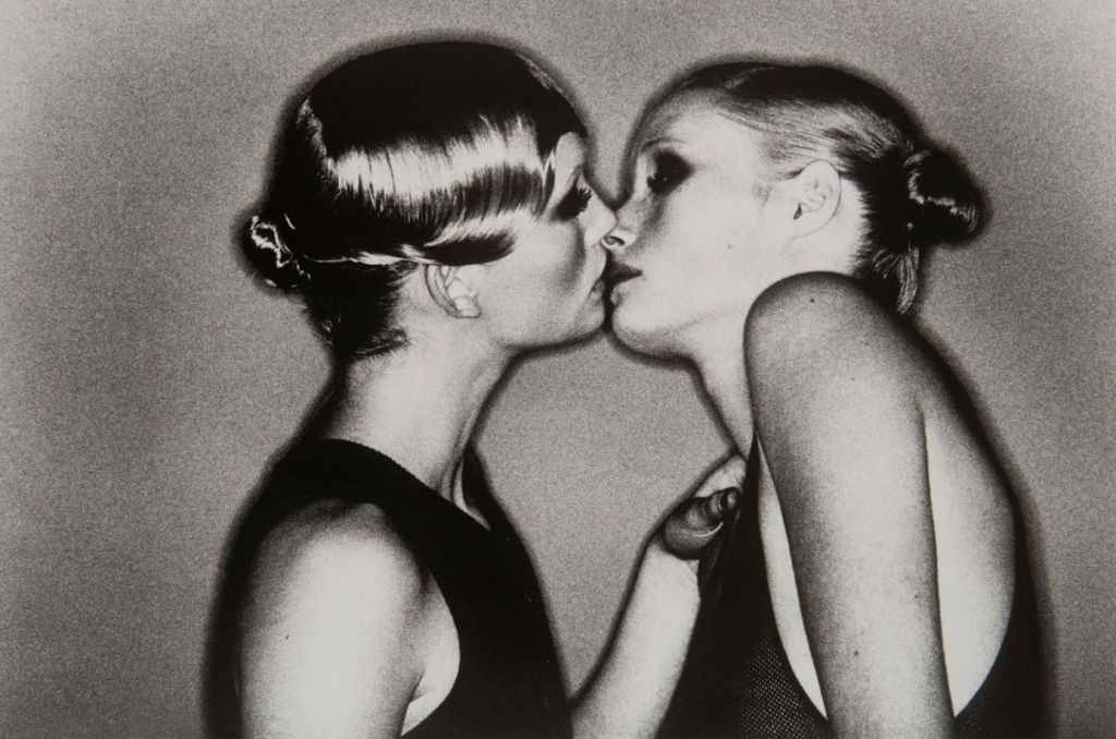The Kiss (1974) by Newton Helmut Newton (1920 – 2004) ~ Two Models in my Studio, Paris, 1974 | src Finarte Helmut Newton (1920 – 2004) ~ Le baiser | The Kiss, 1974. Tirage argentique d’époque, 1975 | src Artcurial