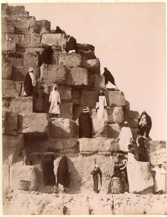 Ascent of the pyramid, 1870 Hippolyte Arnoux :: Ascension of the Pyramid, Egypte, 1870. | Ascent of the pyramid, Egypt, 1870s. Albumen paper print. | src Catawiki