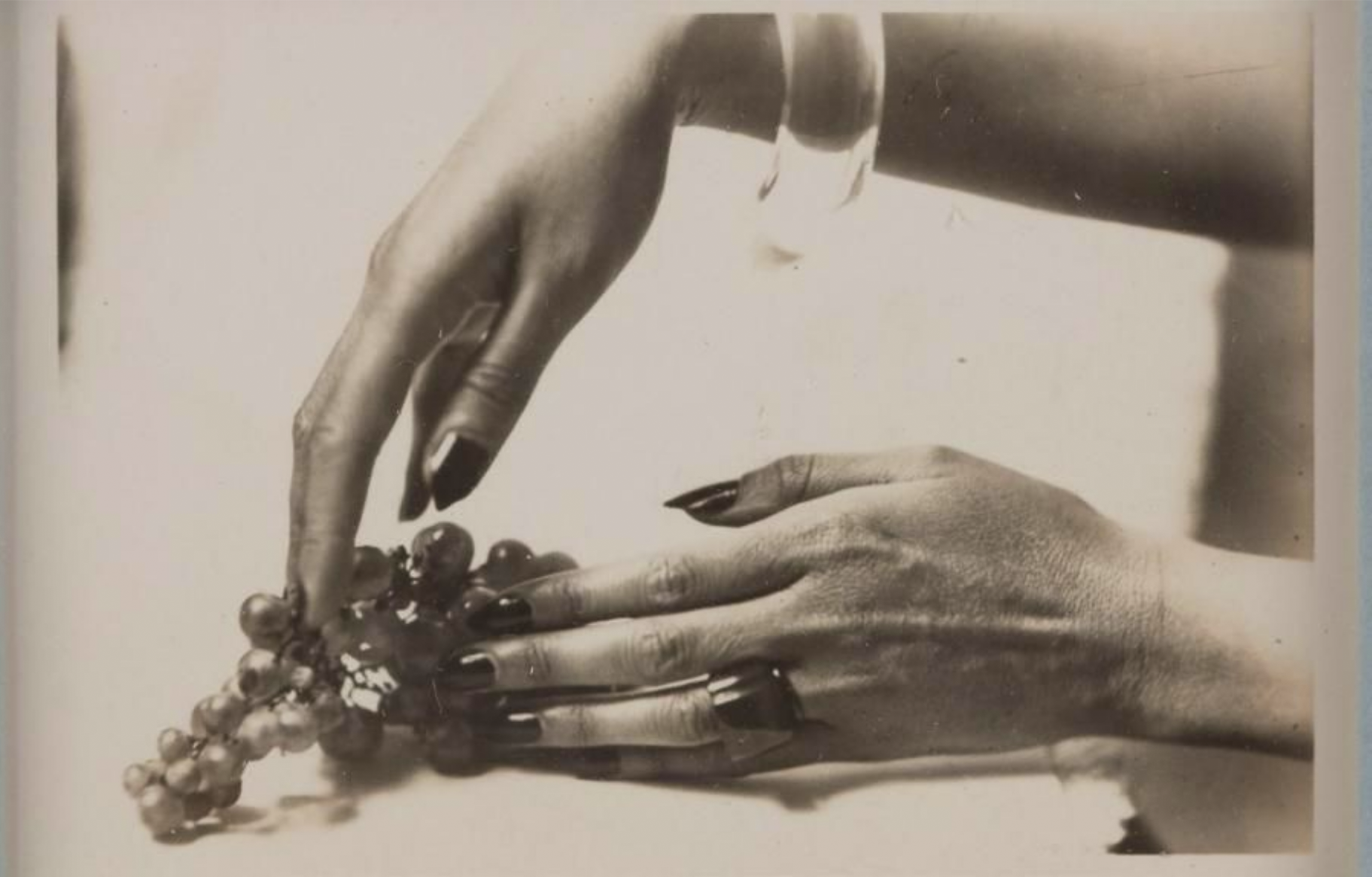 Jacques-Henri Lartigue :: Mains aux raisins | Hands with Grapes, ca. 1930. Tirage argentique d’époque représentant les mains de Renée Perle. Annoté au verso de la main de Lartigue au crayon: “M1” | src Aguttes Auction 2017