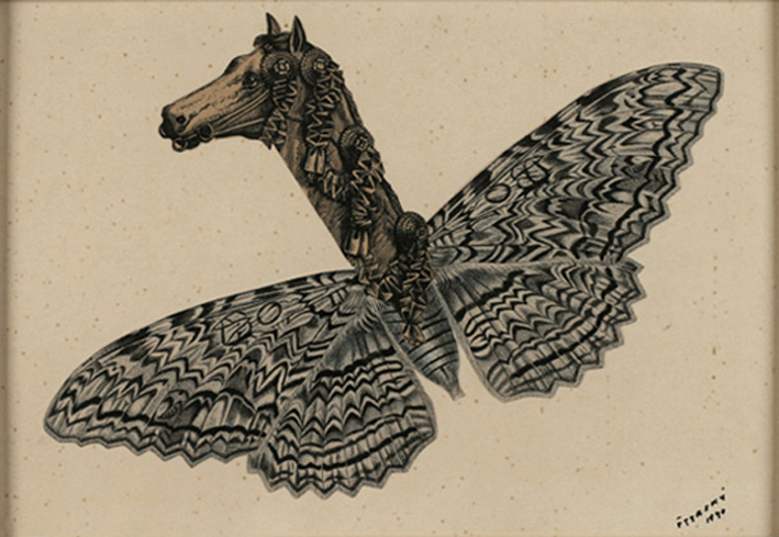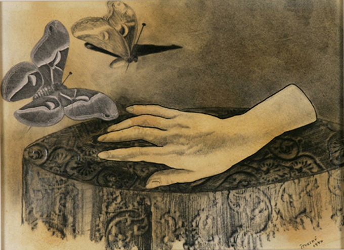 Jindřich Štyrský :: Alabastrová ručička ~ Little Alabaster Hand, 1940. Pencil frottage & collage on paper. | src Metamorphosis Victorianus: Modern Collage, Victorian Engravings & Nostalgia exhibition at Ubu Gallery