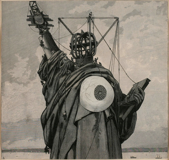 Jindřich Štyrský :: La Statue de la liberté ~ The Statue of Liberty. From Stӗhovaci Kabinet ~ Vanity Case, 1934. Collage. | src Metamorphosis Victorianus: Modern Collage, Victorian Engravings & Nostalgia exhibition at Ubu Gallery