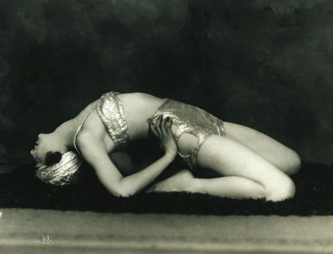 De Mirjian Studios~ Marguerite Agniel posing leaning back, circa 1929 | src Wellcome library collectionAgniel in Supta Virasana. Marguerite Agniel demonstrating “A good exercise for the back and abdominal muscles” in her 1931 book The Art of the Body (Batsford, 1931). Photograph by John de Mirjian | src wikimedia commonsJohn de Mirjian ~ Marguerite Agniel posing leaning back wearing a two-piece costume and matching turban, photographed in studio, 1929 | src Wellcome library collection