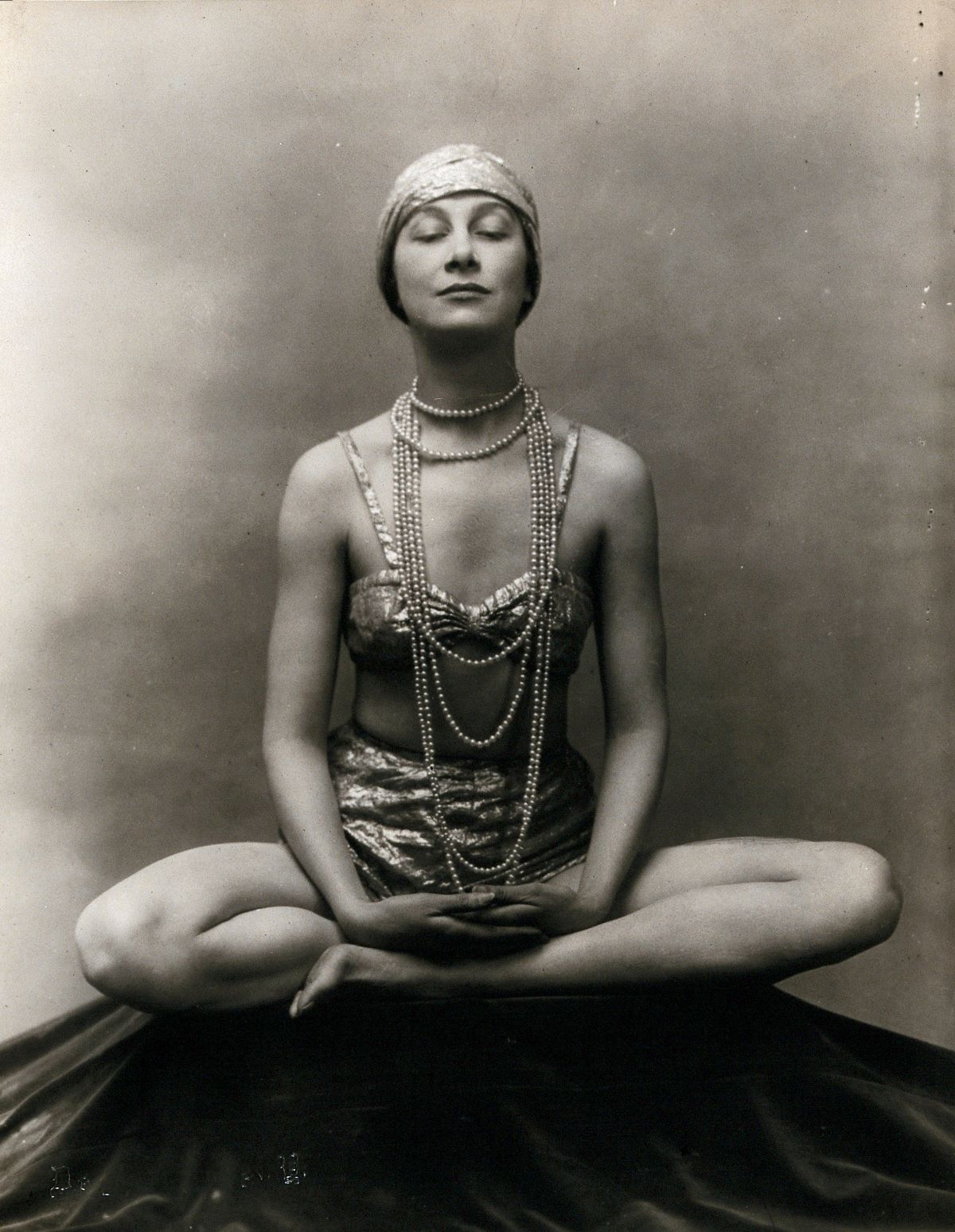 John de Mirjian Studios ~ Marguerite Agniel seated in a Buddha position, circa 1929. | src Wellcome collectionJohn de Mirjian ~ Marguerite Agniel seated in a Buddha position, wearing a two-piece costume and matching turban, photographed in studio, ca. 1929 | src Wellcome library