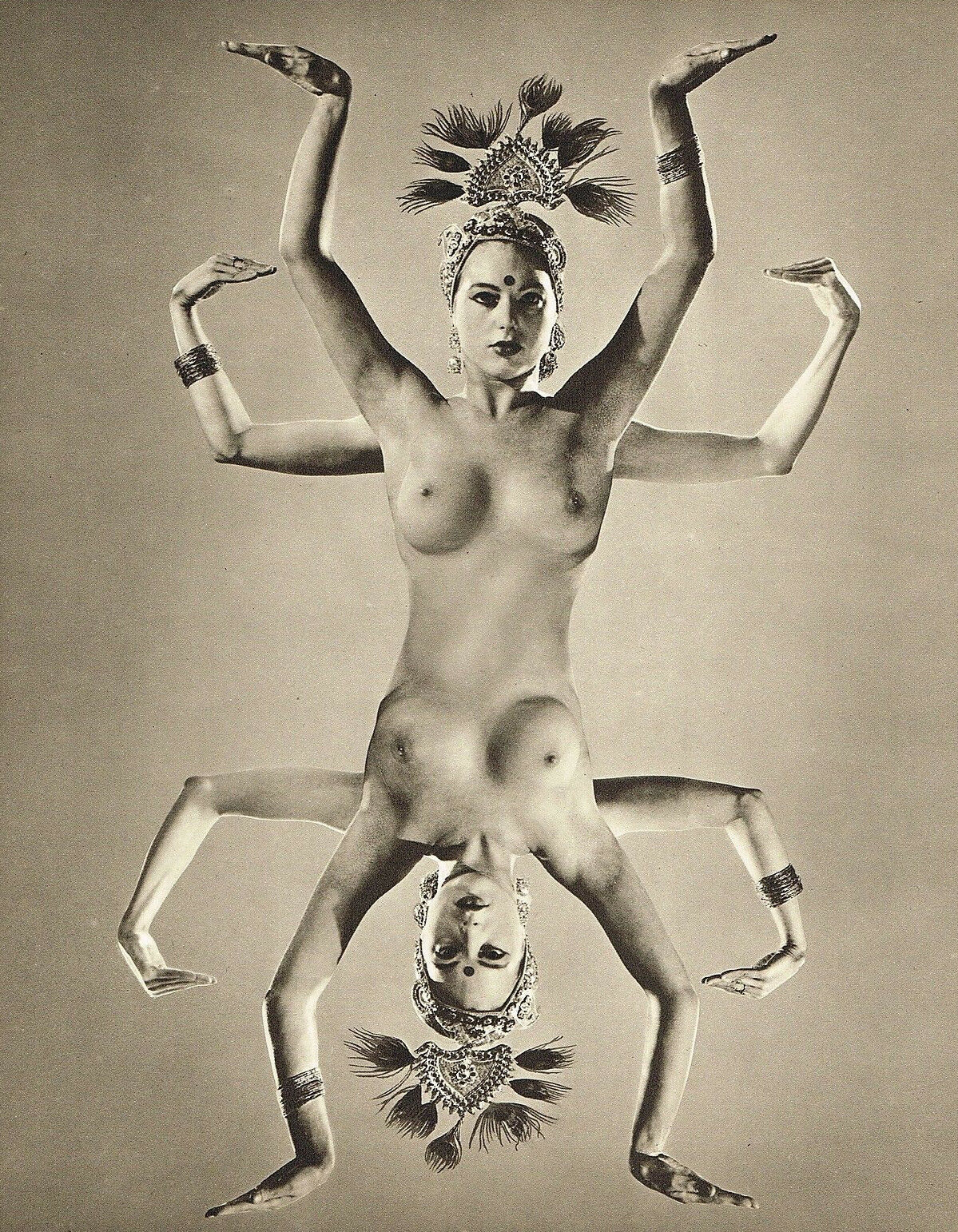John Everard :: Indian Goddess (Déesse hindoue) female nude, 1950s. Original vintage full-bleed photogravure print on matte paper. | src vintageads on eBay